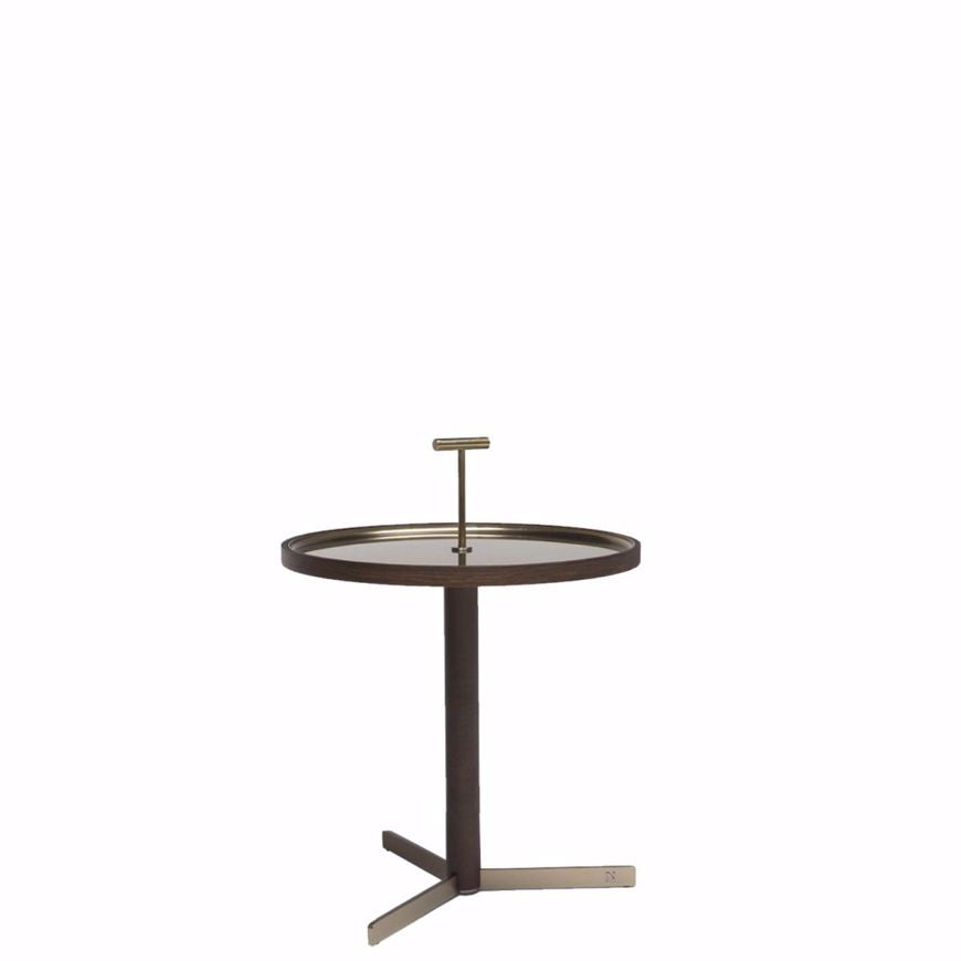 The Icon collection includes tables and accent side tables with a strongly decorative personality to compliment the new Icon sofa by Natuzzi Italia. Refined end tables featuring an extremely clean and formal aesthetic. The shape of the tray-top and the central solid wood legs are the perfect balance between technology and high-design. The finishing and dimensions fit perfectly into any living room.